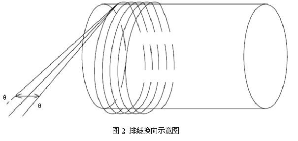 在解決方案中,著重改善收線排線和放線排線的方向切換,如圖2所示,在排線到收線盤邊緣時,即換向時提高排線伺服速度,從該排線方向的排線成型角度跳轉(zhuǎn)到相反排線方向的排線成型角度,消除了低速換向?qū)е碌耐辜绗F(xiàn)象,使排線平整。