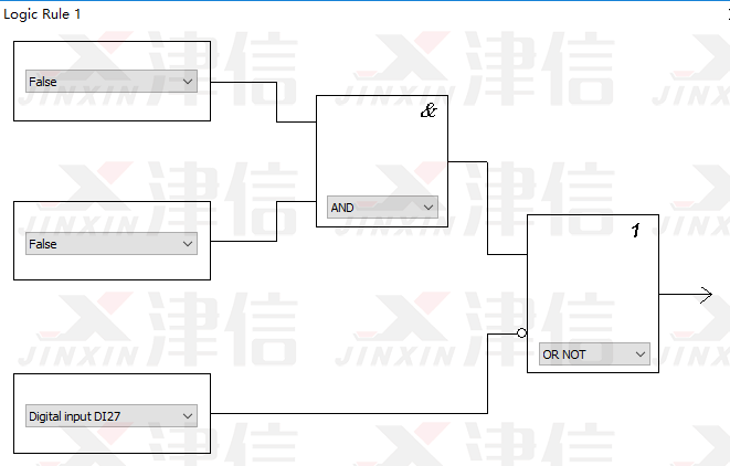 Logic Rule 1判斷是否符合停止條件。在運(yùn)行過程中,如果按下停止按鈕,27號(hào)端子斷開,經(jīng)過邏輯判斷,滿足停機(jī)要求,變頻器將停止輸出。